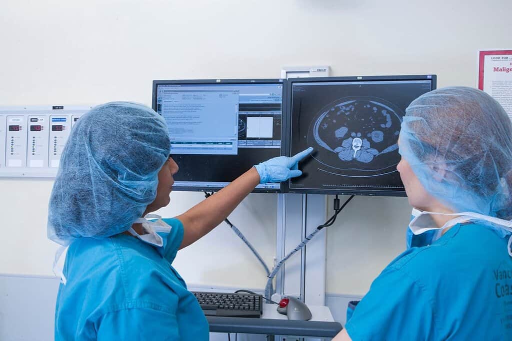 פענוח ראשוני של אולטרסאונד נעשה על ידי הווטרינרים הרדיולוגים שמבצעים את הבדיקה במקום. רדיולוגים הם גם מי שמבצעים ומפענחים את בדיקות הסי טי. פענוח של בדיקות אלו יכול להיות תוך כמה דקות במקרי חירום, אבל במקרים שאינם כאלה לפעמים מקבלים תשובה רק אחרי כמה ימים.